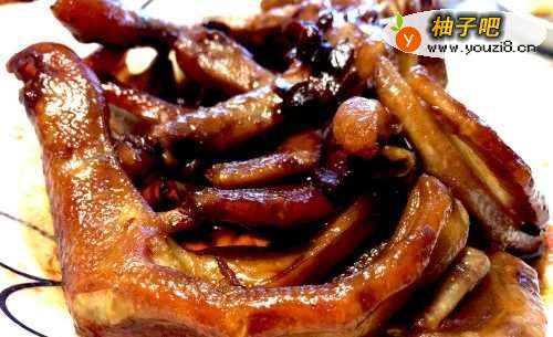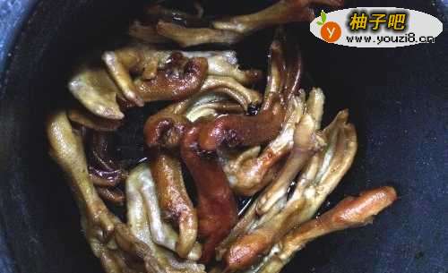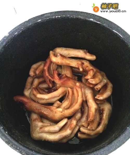6煮1个小时后,鸭爪就会入味并熟透,出锅开吃;