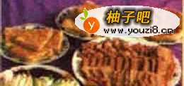 5朝鲜族烤牛肉 :新鲜牛肉去筋膜、脂油,切成肉片,加醋、酱油、蒜末、白糖、胡椒粉、味精、香油拌匀,另备酱油、辣椒末、白糖、白醋、香菜末、大蒜等调味品分装于小碗、炭火炉放于桌心,上放铁箅子,用筷子夹肉片放在箅子上烧烤,蘸调料后食之,外焦里嫩、酥香咸辣。