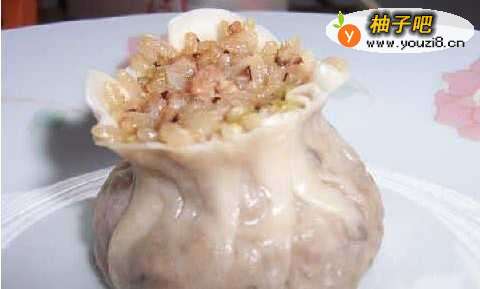 1马烧麦 :沈阳的回民小吃,用于水 烫面,大米粉作扑面。选用腰窝、紫盖、三叉三个部位的牛肉剁碎制馅,加调料用清水浸煨成稀疏的“伤水馅”。味道十分劲道。