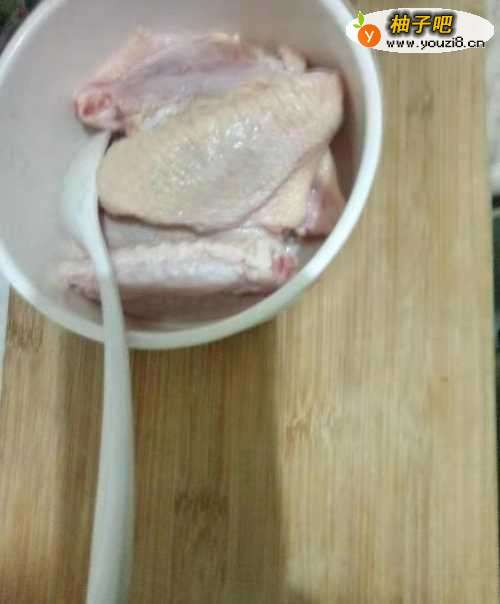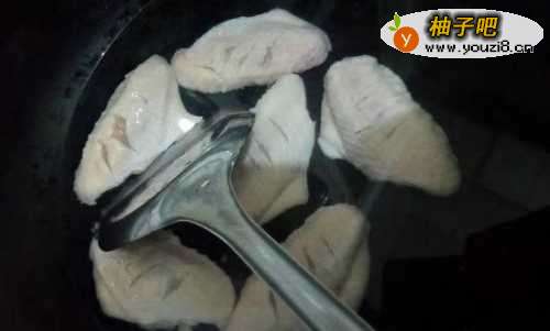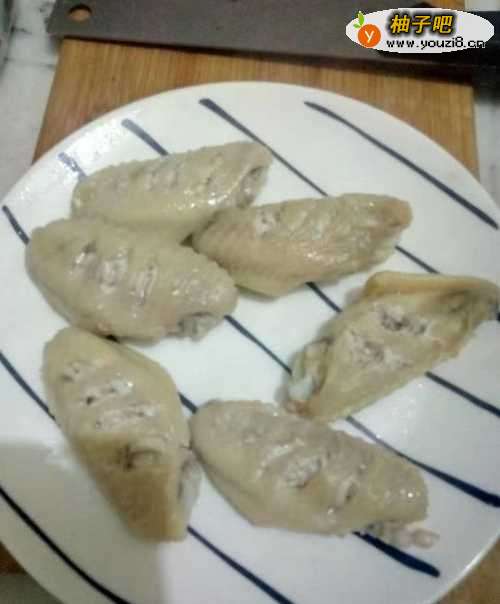 4煮好的鸡翅清洗好后放到盘子里留着等下配置,在煮的过程中也能加入姜等调料,具体要看你喜欢的口味。
