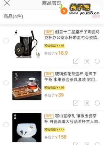 7.点击商品管理,能查询上传的宝贝,也可删除已有宝贝。
