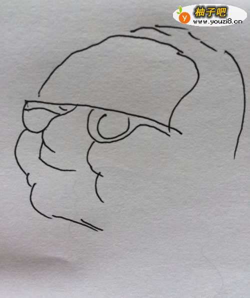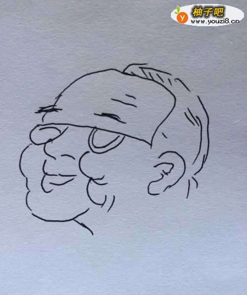 6然后画出爷爷的耳朵额头上的皱纹等等。这样慈祥的爷爷就画好了。