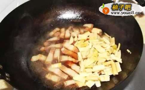 77、将切好的冬笋加入锅中。一同炖煮,大概时间10分钟左右,直到笋块熟了为止。