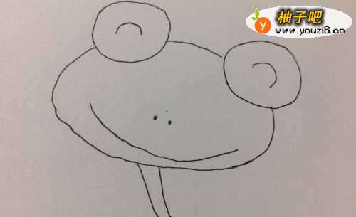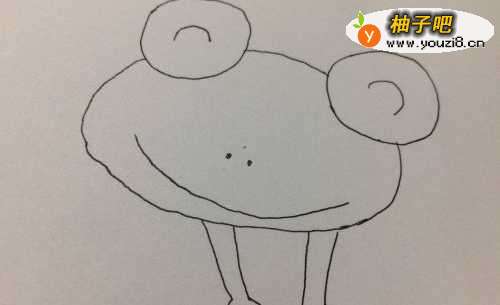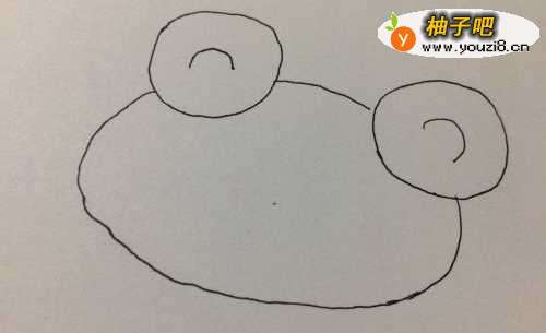 4接着画出一个大的圆吧青蛙的头部画好。