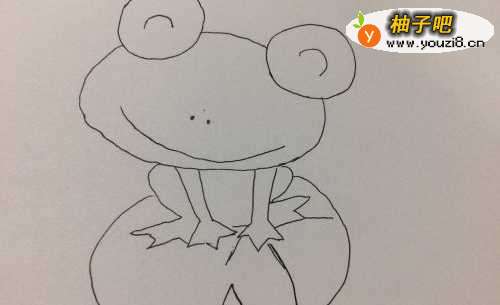 9最后在荷叶的缺口处画出荷叶的根茎,这样荷叶上的青蛙就画好了。
