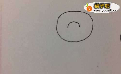 2然后在圆里面画出一条弧线。就是青蛙的一只眼睛哦。