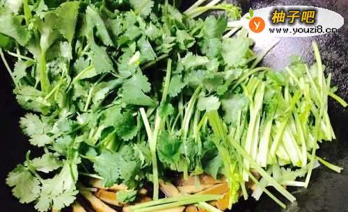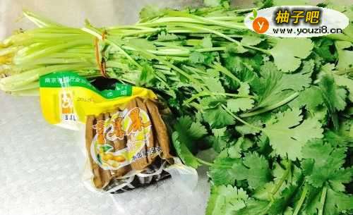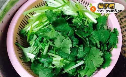 首先把买回来的香菜去根去烂叶,分别洗干净沥干水分备用。