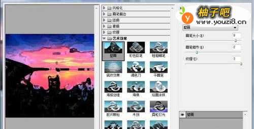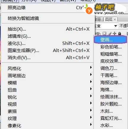 2「滤镜 」‐「艺术效果 」‐「 壁画」,如下图所示。