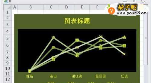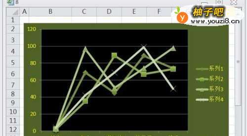 5点击【布局12】后,即可让带数据标记的折线图显示布局12效果,如下图所示。