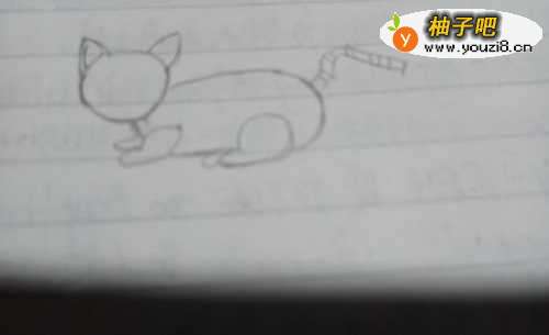 先画出猫的头和耳朵