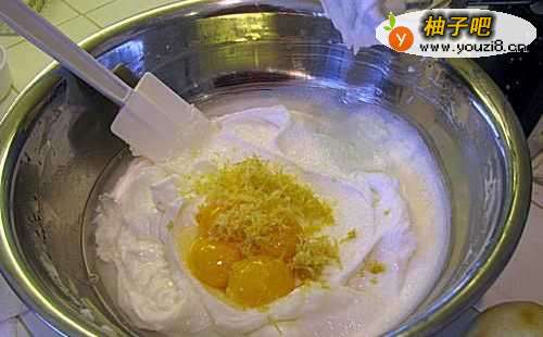 2添加蛋,茴香,柠檬和肉桂,加入蛋黄,茴香,柠檬皮,柠檬汁,肉桂混合在一起。
