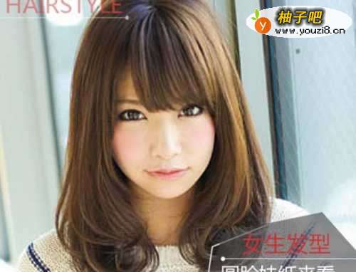 4中长发怎样打理简单好看呢?一头棕色系的中长发内扣发型,自然的披散在身上,韩式斜刘海下的白皙圆脸,清新修颜时尚可人。