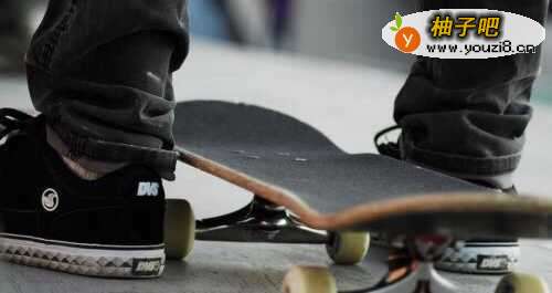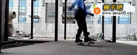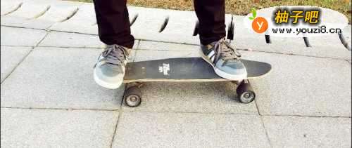 原地练习办法,将我们的滑板卡在一条缝隙上,使它固定。