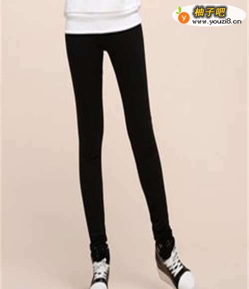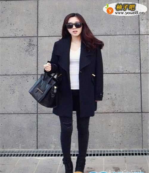 3搭配方式三:内搭黑色打底衫,下穿黑色紧身裤