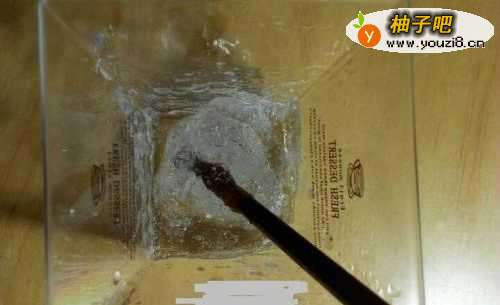 拿出一个容器,倒胶水和水,比例是胶水1比水2.5,能拿一个瓶盖试试比例,倒进去之后进行搅拌,别怪我容器没洗??