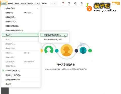 2在文件列表中,点击【导入】→【印象笔记导出文件】。