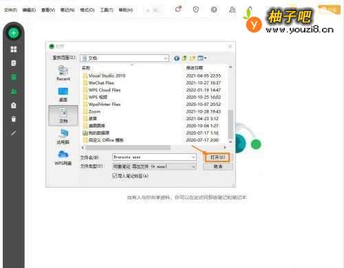 3在开启界面,选择要导入的【笔记文件】,点击【开启】。
