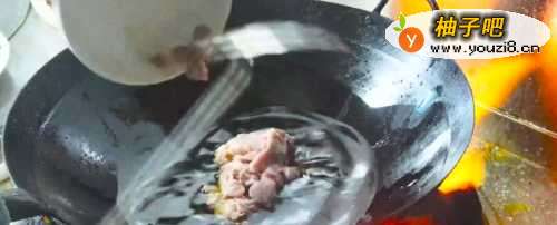 8油温三成热下我们准备好的肉片,油温不需要太热,不然肉会粘锅,肉炒至泛白捞出备用。