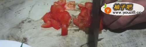 5西红柿切成方便翻炒的大小。