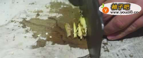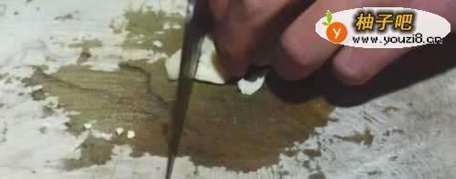 6蒜瓣拍扁了后切成蒜沫。