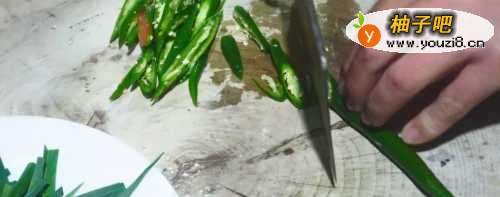 4青椒切成丝状。
