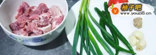 做一道青椒炒肉,我们需要的食材有猪肉,辅料有青椒,西红柿,生姜,蒜瓣,蒜苗。