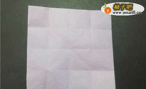 准备一张正方形的纸,如果想小吃盒大一些,能选大一点的纸。三角对折,横竖对折,