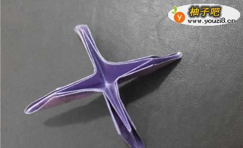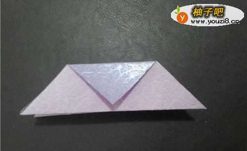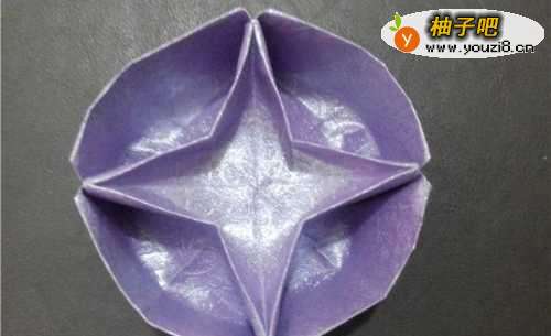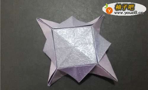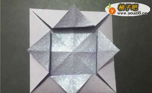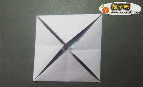 7捏住四个角向中线折,得到这个形状