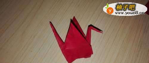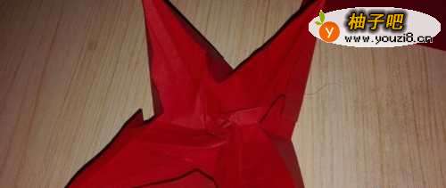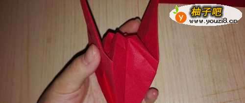 13然后调整好,折出头部,稍稍拉一下尾部,再开启。然后我们的玫瑰千纸鹤就制作完成啦。