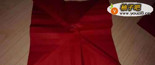 7折好后,我们开启整张彩纸,然后将正中央的小正方形凹进去。