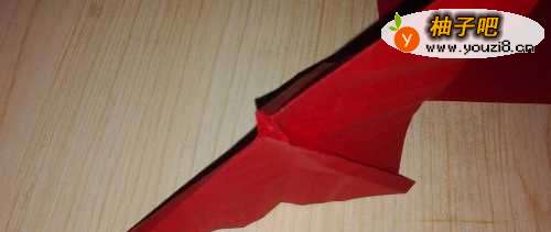 12然后将其中的两面翻到上面去(这两面其实就是翅膀。)然后再将其余的两面的角折进去,然后再调整一下,翻到上面去(这是头部和尾部)