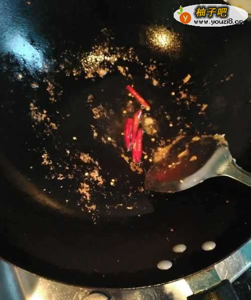 2第二步,在铁锅中加入适量花生油,等油七八分熟 以后加入红辣椒。