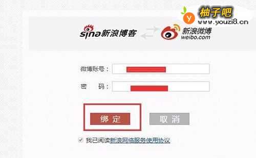 4然后我们输入新浪微博账号和密码,点击绑定;