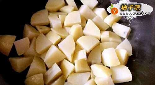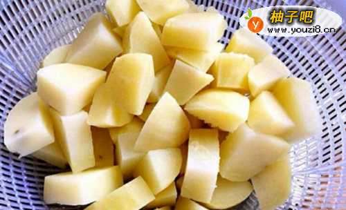 做锅巴土豆的话就先准备好土豆三个,把土豆去皮,切成块放到锅里面煮熟,再煮土豆的时候放点盐进去,这样会让土豆入味了,