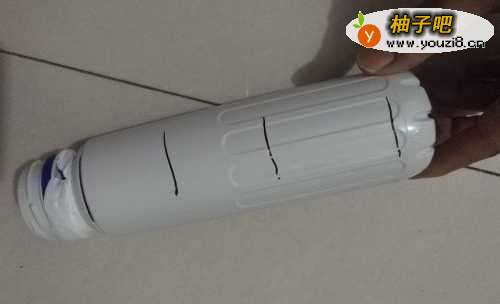 2用记号笔分段,先把头和瓶底分掉,然后把中间的平均分三段
