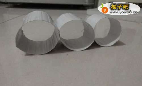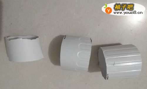 3把饮料瓶的口和瓶底去掉,中间的剪成三段