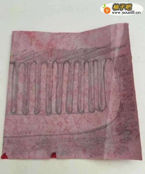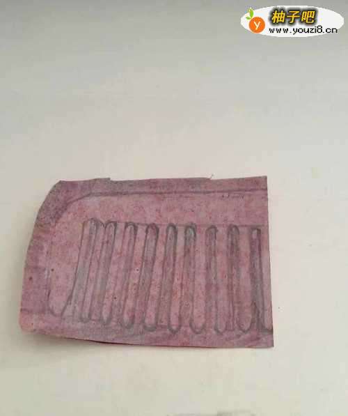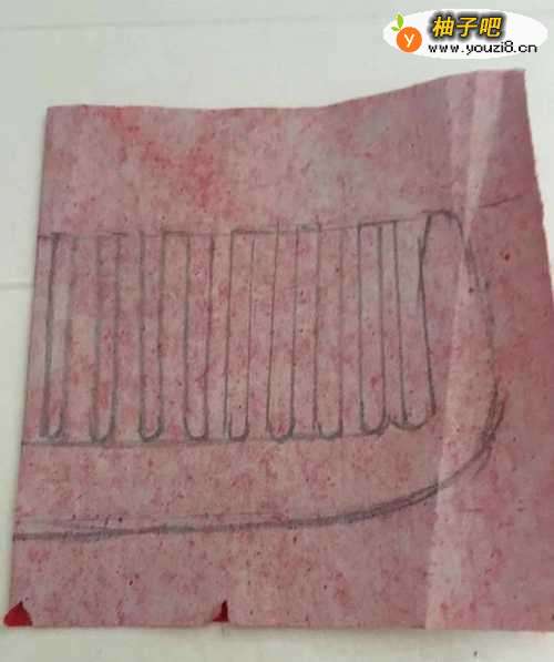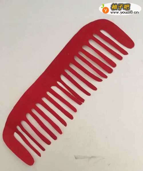 6第六步 剪完外围之后 再剪里面细致的部分和其它涂实的部分 剪完之后 取开铺平 一把美观看漂亮的红梳子就裁剪完成了