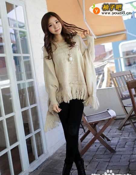 9完美的披风造型的针织衫,超级宽松的版型,没有身材的限制,能掩盖住腰身的不足,衣摆下方采用了流苏的装饰,个性十足,淡雅的色彩,更为的温馨浪漫。