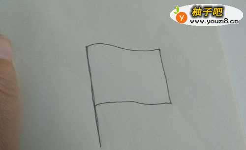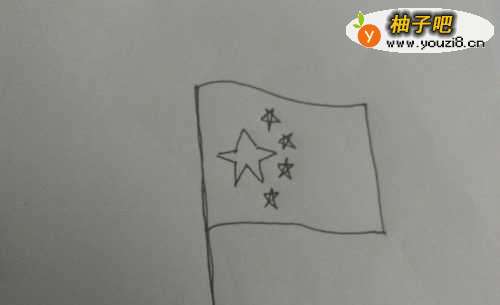 3在红旗上画上五颗星星,一颗大的,四个小的。