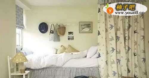 作为一个软隔断,色泽漂亮的布帘卧室分割成几个不同的机能的小空间。如需要,布帘隔断就能任意开启,是弹性隔开卧室睡眠空间和公共空间的理想形式。