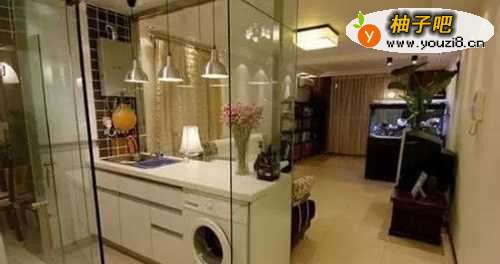 玻璃也是一种常见隔断,玻璃品种繁多,有普通玻璃、磨砂玻璃、彩绘玻璃等,而且通透性与装饰效果突出,在光的作用下色彩有变化,所以在隔断中运用非常普遍。能避免木门或铁门带来的沉重感,显得更加轻巧,装饰性也更强。磨砂的玻璃也不至于让你在洗澡的时候 春光外泄。