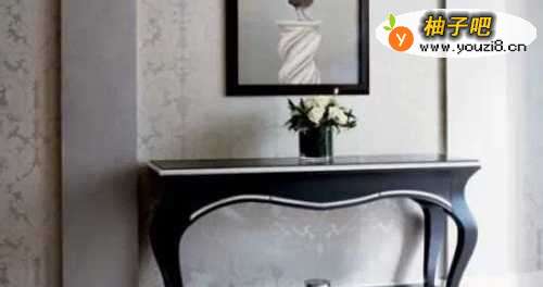 作为一种家具隔断,小型的装饰桌非常适合放在玄关,桌面不宽,并且能倚墙而立,在装饰桌上挂几幅装饰画,再配上一对装饰用的台灯和植物,就能界定出玄关的空间,成为玄关和客厅之间的隐形隔断。