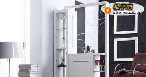 收纳柜--利用大小不一的柜子对客厅空间进行有效的分隔,而且位置能改变的,客厅的布置也能常常发生变化,从而增加了住宅室内空间的多变性。