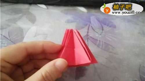 3其他的角按照上面的步骤运作完成,如图一。我们把上面的角向外拉,再把它和在一起,如图所示。