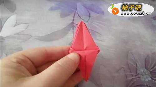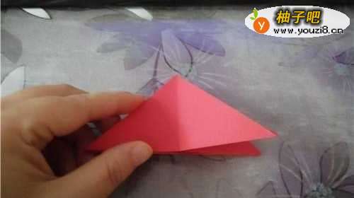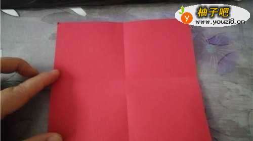 先把彩纸的两边对折,翻到背面,再把四个角向内折,然后再把中线对折。