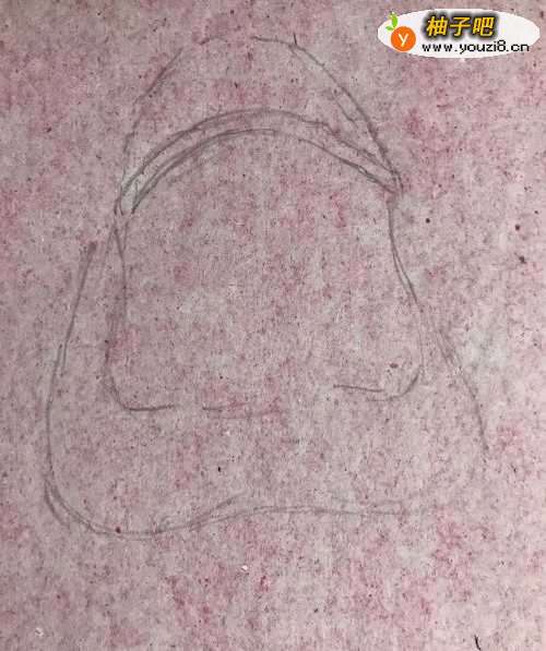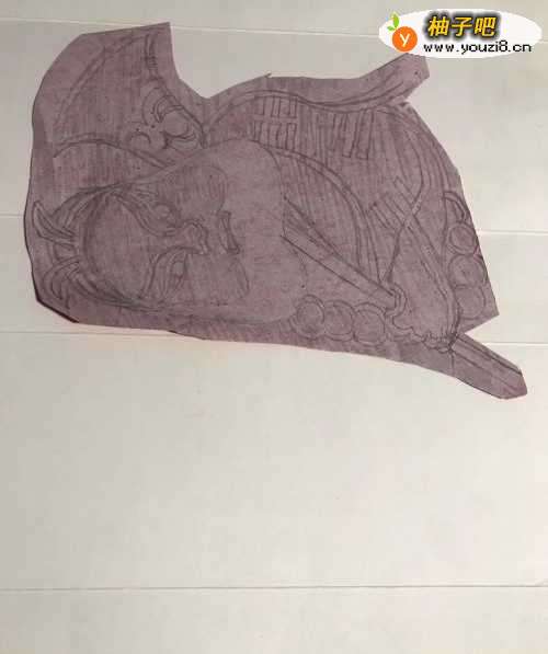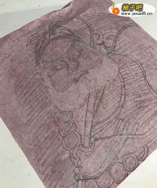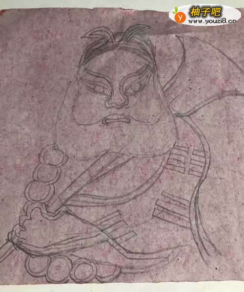 2第二步 反面朝上摆放好之后 再拿起绘图铅笔画上鲁智深的帽子和他的脸部和大胡子的轮廓等等