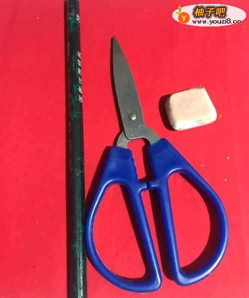 5第五步 要剪去的部位都涂实好之后 再拿起手工剪刀开始裁剪 首先把人物外面多余的彩纸剪去