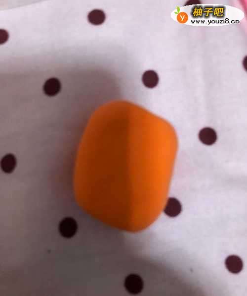 2在拿出橙色的彩泥揉成正方形,在拿出粉色的彩泥揉成两个圆形粘到上面。