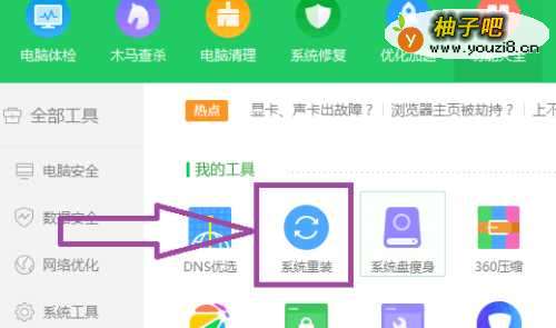 10如果删除了“shared.lck和shared.xml”两个文件后,还是打不开的话,那么我们能进入到安全卫士的功能大全页面,在页面上找到“系统重装”,利用系统重装的功能,将计算机的系统恢复到初始化状态,然后在初始化状态的情况下,重新安装skype软件,一定能解决软件打不开的问题。
