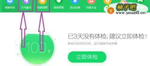 3然后进入到电脑清理页面,在页面上能清理一下计算机的缓存垃圾、恶意插件等,防止因计算机空间不足或被安装恶意插件,导致软件打不开的情况。